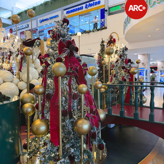 En Multiplaza, el árbol de BAC Credomatic destaca por su estilo clásico y detallado. Miles de luces pequeñas iluminan una estructura llena de ositos de peluche, tamborcitos, avioncitos y una bailarina al frente, justo bajo el rótulo del banco. Los ornamentos dorados, rojos, verdes y blancos llenan el árbol de textura y color, dando esa sensación de Navidad tradicional que nunca pasa de moda.